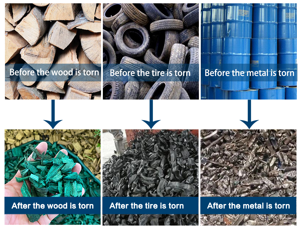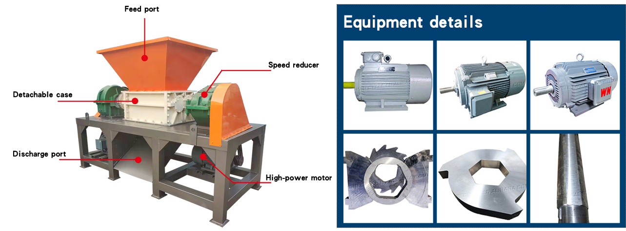 The blades in the double-shaft shredder use super-strength refined alloy knives. This kind of blade is a meshing blade, forming a pair of rollers. When the metal enters the inside of the double-shaft shredder, the rollers move in opposite directions to shred the metal block. when